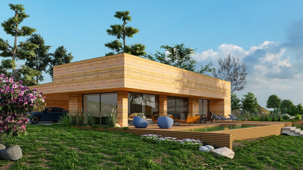 A serene residential design combining clean forms, warm timber accents, and a calm connection with nature.