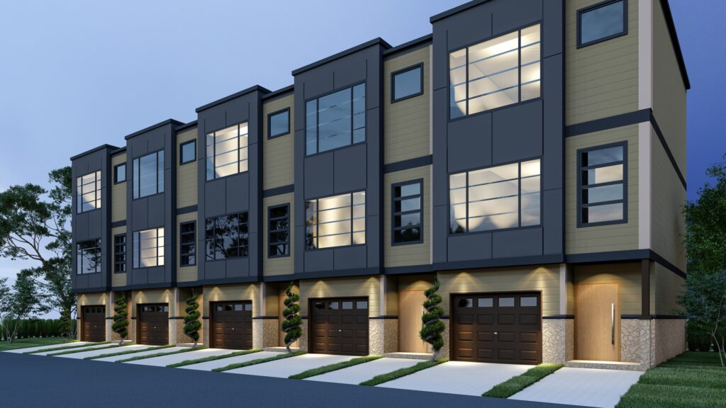 Modern townhouses designed with clean lines, natural textures, and functional luxury living.